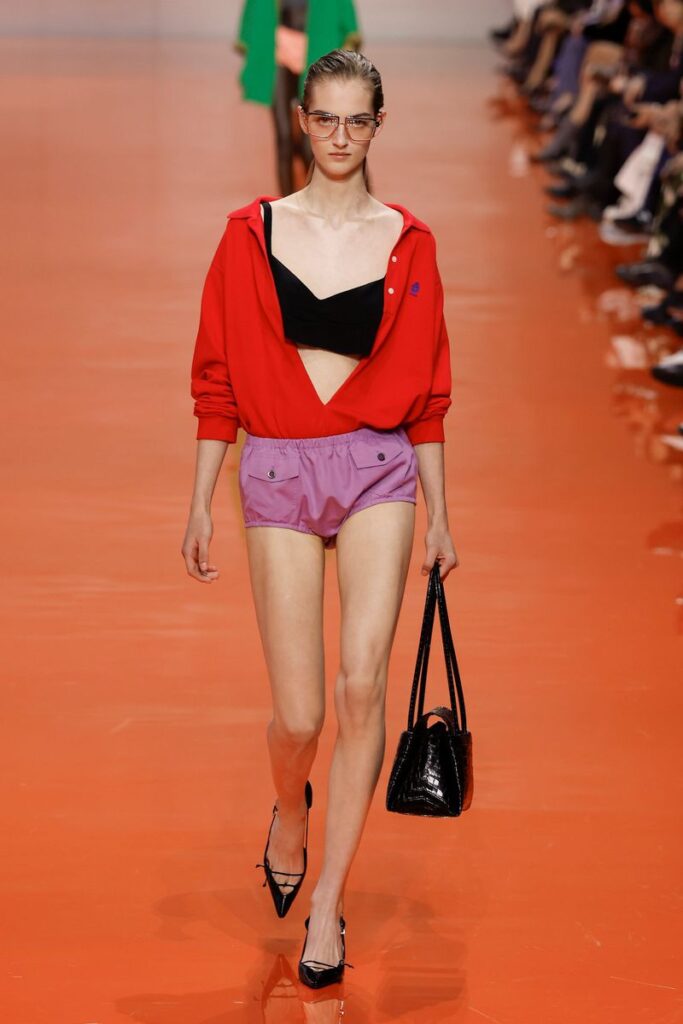 Chamaram de “Body of Composition”, mas poderia muito bem se chamar Prada Randomiser”; como batizou a Dazed, e com razão, honey. Camisas boxy com bolsos técnicos se enroscavam em saias Frankenstein de renda e tule, bloomers cargo brotavam como bonecas de papel saídas de Xique-Xique, slips bordados eram jogados sobre alfaiatarias cinzentas. Olivier Rizzo costurou o caos como maestro irônico, Guido Palau deixou cabelos bob com movimento nervoso… perfeitos para as fotos que explodem no Instagram, TikTok… e Lucia Pieroni limpou a pele até virar tela clínica, porque aqui o protagonista era o glitch, não o blush.