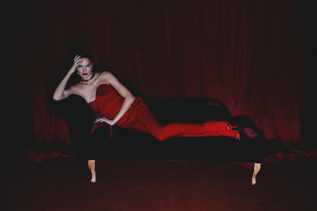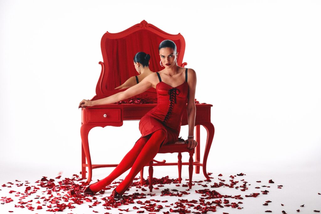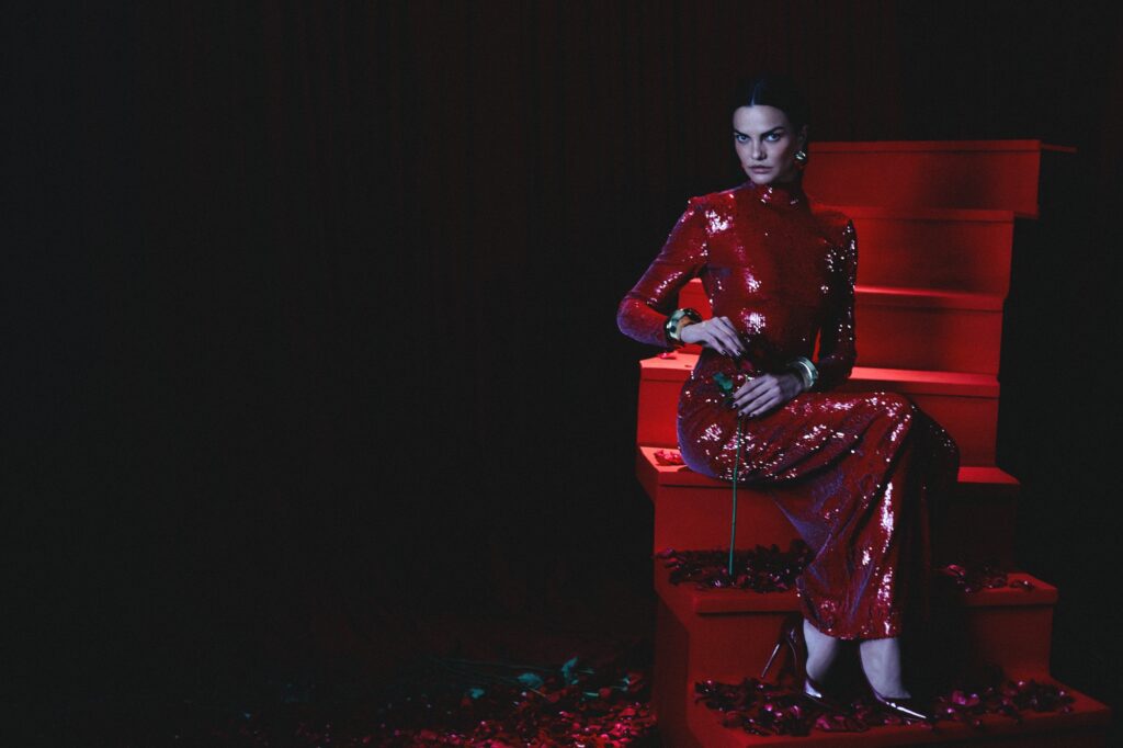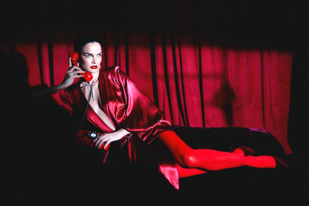 E sim, eu vou falar de moda dentro dessa crítica pop porque seria quase ofensivo não falar. A estética do lançamento trabalha a teatralidade sem virar fantasia. Tem boudoir, tem femme fatale contemporânea, mas sem o clichê de “mulher perigosa” de filme ruim. Aqui a tensão é mais interessante: controle e colapso dançando colados. O vermelho vira código de sobrevivência. A câmera escolhe a boca, o telefone vermelho na mão, a cortina como cenário de palco íntimo, e de repente você entende o conceito sem precisar de cartaz explicando… Babado fortíssimo. É a supermodelo que decide se mostrar humana e imperfeita e isso, no nosso momento de indústria, é o novo luxo emocional. Não é “fragilidade como marketing”, bebê. É vulnerabilidade como autoria, quando é de verdade.