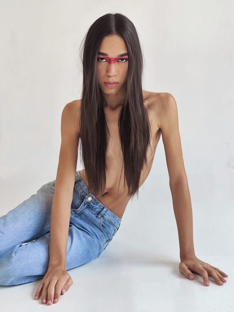 O fato de ser representada por uma agência como a EGM – Elian Gallardo Model, que efetivamente investe em corpos dissidentes, só reforça a potência dessa trajetória. O fato de abrir o desfile de Le Benites na Casa de Criadores 57 transforma essa potência em registro histórico. O fato de tudo isso acontecer com alguém que já ouviu tantos nãos de agências que não quiseram fazer o trabalho duro de formação é praticamente um tapa elegante na cara da preguiça estrutural do mercado.