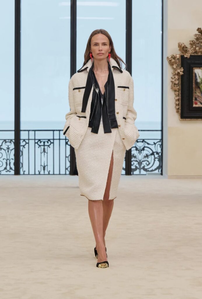É exatamente aí que a coleção ganha espessura. Blazy não volta a Biarritz para fazer fantasia de arquivo, não, viu… Ele volta para reativar uma pergunta essencial: o que Chanel significa quando volta a se mover?